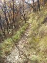 Sentier vallonné en sous bois qui met à rude épreuve le cardio ! Quelques passages trialisants au menu qui passent que si le terrain est sec ! Passages après le sommet en T4 !