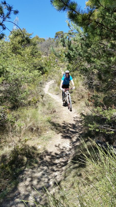 On a réussi à mettre Kilik à l'heure en lui donnant rendez vous 15mn avant, et on rejoint Romlef et Benoit à Saillans à 9h30. On monte au col de Beaux (7 beaux mercenaires...) puis au dessus de Babrou où la première descente de la journée nous met en jambes de manière ludique. La monté à la chapelle St Christophe est tranquille avec une piste régulière. On entame une boucle autour de serre Chabas, avec un passage au col de gerbe où la piste est parfois moins régulière, puis un portage et une traversée X-Country assez sympa, sur ou sous le vélo selon les protagonistes. La descente est plus ou moins rapide pour chacun des 7, et la piste nous ramène à la chapelle pour 12.10, l'heure sacrée du PicNic pour les GreVTTistes d'un certain âge.