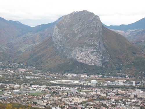 Arrivé à St Nizier , la pluie et le vent s'affole, La Molière au dessus de moi disparait dans le brouillard, il est temps d'attaquer la descente (prudemment...),emmitouflé avec cagoule sous casque et gants de ski de fond et bien sur le K-Way. Tout passe mais à moindre allure (cha gliche chur les cailloux...)