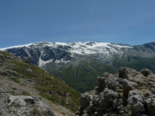 Pèlerinage sur ce magnifique sommet aux portes du parc de la Vanoise. La vue est vraiment splendide! Pendant que je descends sur les Prioux (la prochaine fois j'éviterais de faire ça le jour du Tour des Glaciers de la Vanoise, trail bien connu), seb rend visite au Grand Béchu. Remontée longuette et hardue au col de la Dent. Seb tente de me vendre le col de la Chal qui selon un copain de Manu est identique au col de la Dent. Méfiance oblige (on me la fait pas à moi) je vote pour le col de la Dent que je connais déjà. Visiblement mes souvenirs de ce sentier étaient erronés: c'est vraiment raide et expo avec les difficultés qui s'enchainent sans répis! A noter une variante testée pour rejoindre le vallon des Avals par le Mont Bel Air très sympa (je rentre le sentier de ce pas).