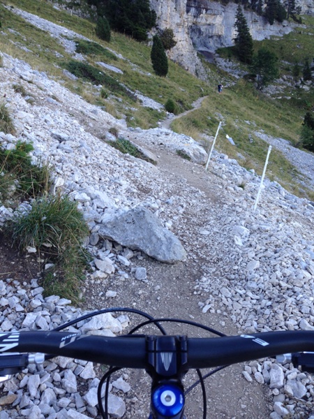 A la descente, aux croisements avec les marcheurs, j'ai toujours marqué l'arrêt mais je trouve que le pourcentage de marcheurs qui m'ont incité à passer est de plus en plus important, les consignes MBF ont du bon, c'est devenu: "arrête toi et on te laissera passer"... J'ai du passer à 70% en y étant invité gentiment, bon y'a le charme aussi, l'harmonie des couleurs et le style!!!