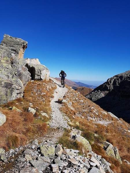 Montée exigeante au Colle di Vers, courte descente avant d'attaquer le portage pour le Colle delle Sagne. S'en suit une traversée sans fin somptueuse et une descente finale sur Chiesa qui a transformé nos avants bras en bouteilles bien béton