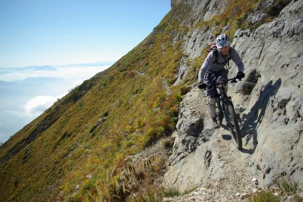 Manu a trouvé le bout de sentier manquant après la cabane du Berger: c'est droit sur les freins dans les pierriers et la foret, mais c'est sympa!
