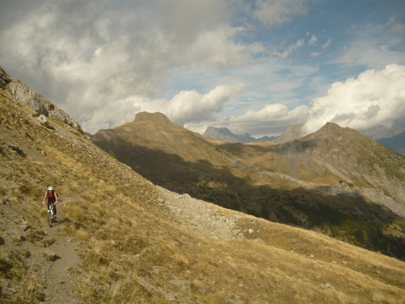 Dans la descente comme ce n'est pas trop raide (single et alentours), on peut s'aventurer en dehors pour jouer avec les rochers et les compressions naturelles...Vitesse et tracé à adapter selon l'envie, et le niveau!