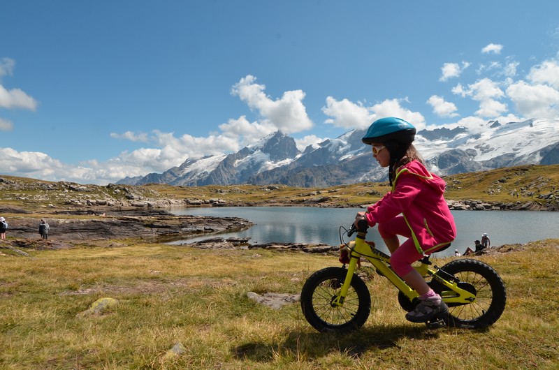 C'est vrai que c'est pas mal le 2 roues pour filer sur la piste. Charlotte abandonne sa monture au pied de la montée au lac Noir, Marco met le Ramones sur le sac à dos. Une fois sur le plateau, ça roulotte pour le gosse. Bon, il va falloir lui apprendre à gérer les pédales dans les ornières...