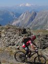 Il est 8 heures 30 et il fait déjà chaud. Fifi monte à un bon rythme, faut dire qu'elle est motivée après ses presque 2 ans d'absence sur le vélo. On papote, on papote et on attaque déjà le portage du Col du Grand Perron. On discute avec des gens du coin qui essayent de nous louer un gîte. En fait ça peut intéresser des amis à Fifi.