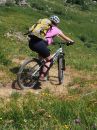 Comme on est pas des lâches, on attaque la descente en freeride avec le bon grip des schistes, elle est jolie la dame, et du coup je frime un peu, et je manque d'un rien de faire un OTB...