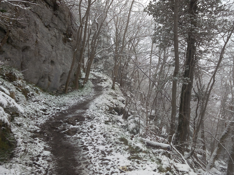 A mi-montée du St eynard je commence a avoir froid, et très vite je rejoins une limite pluie neige avec de la neige sur la partie haute et au sommet.