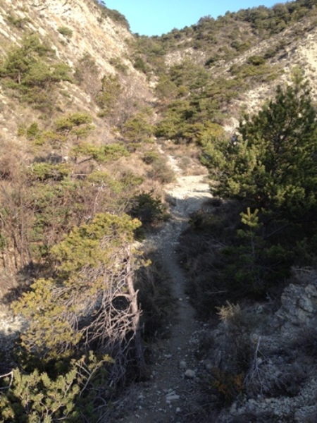 Puis une légère montée assez roulante sur sentier à gauche en quittant le GR9 pour atteindre le col du Chapeau et c'est la bascule de l'autre coté par la meilleure D- pour retrouver La Sauve tout en bas (D- 300m)... Sans sifflement...