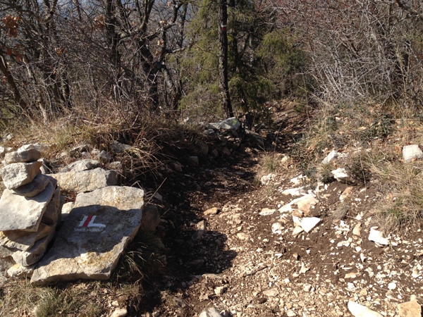 Une fois en mode descente sur le GR9 à partir de La Lancette, les cailloux me captivent à nouveau... Quelle chance une horde de vététistes est passé là en dérapant et chassant pas mal de cailloux... Je pensais manquer de temps et ben non juste ce qu'il fallait pour rendre la portion trop "encailloutée" agréable... Pour le reste ils ont bien bossé, c'est cassant mais c'est le genre du sentier... Le GR9 a été aussi re balisé de jaune et le départ a été rendu maintenant très repérable (large), j'ai même cru à un moment que je n'aurai rien à faire... Faut pas rêver, ça monte haut les sangliers!!!