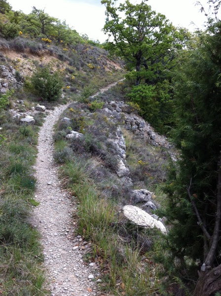 Etat : Sec, sentier très étroit au départ et assez végétatif sans que ça gêne la descente, après au bord des cultures la terre n'est pas toujours bien tassée.