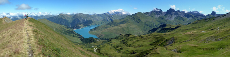 Ensuite c'est toujours la claque visuelle cette crête jusqu'à la Roche Parstire surplombant les lacs et le Mont-Blanc au fond à droite. Génial et les photos sont là même si la lumière était en mode à donf pour cramer la pellicule!