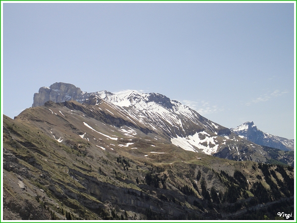 La chienne va m'accompagner toute la montée, bien sympathique et bien affectueuse. ARrivée au col pas de G. en vue, seuls les parapentes virevoltent et panique un peu ma compagne canine. Finalement G. arrive et on en profite pour un pique nique au soleil quand soudain un randonneur arrive vers nous en disant c'est normal y a un vélo là bas qui fait pshtttttt