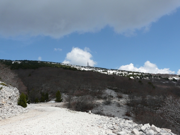 Après la rando boueuse des baumes de Venise on se dit que l'on va aller tester la caillasse du Ventoux. Départ du lieu dit "Les clops" au dessus de Bédoin. Un troupeau de vttistes attaque la montée pendant que l'on monte nos vélos.